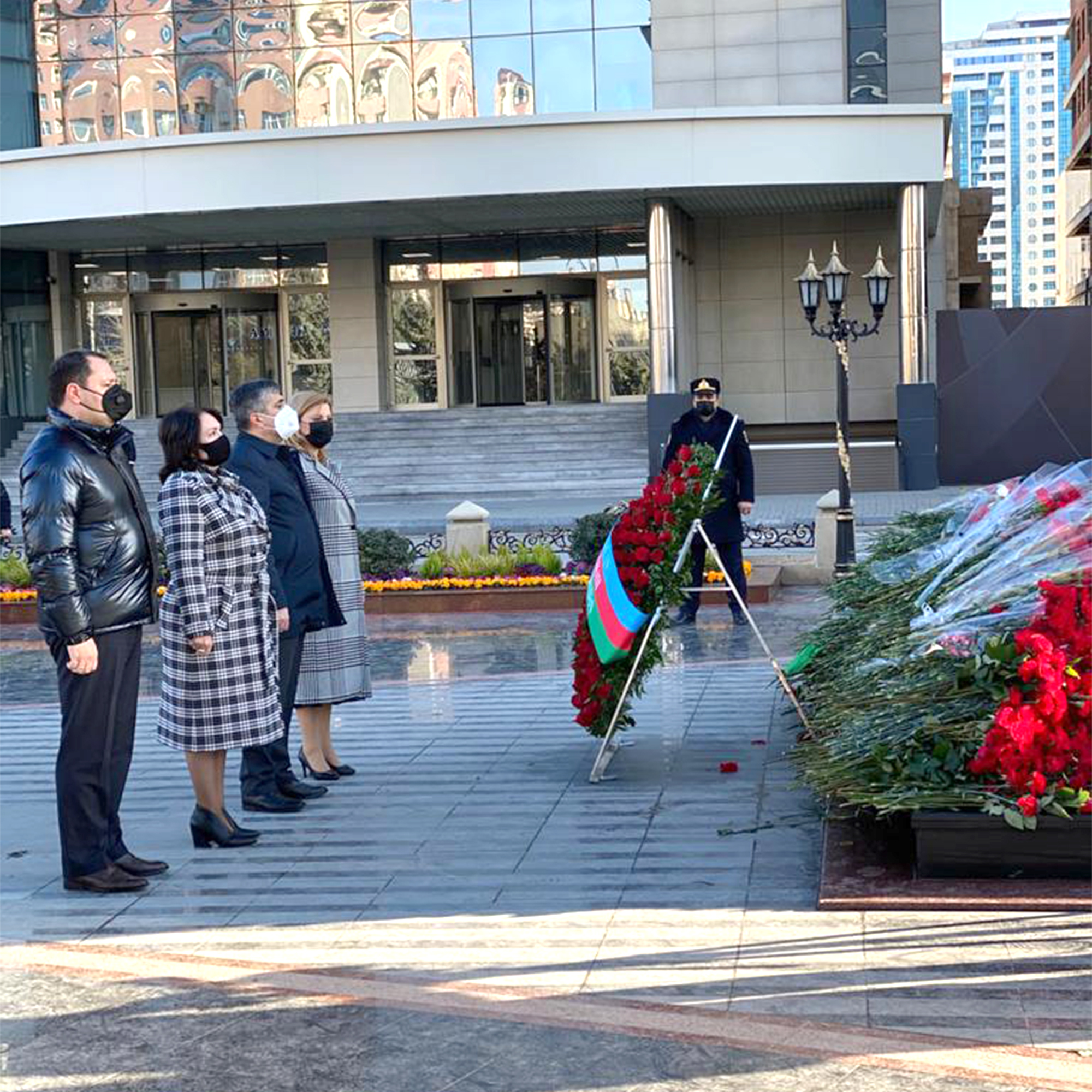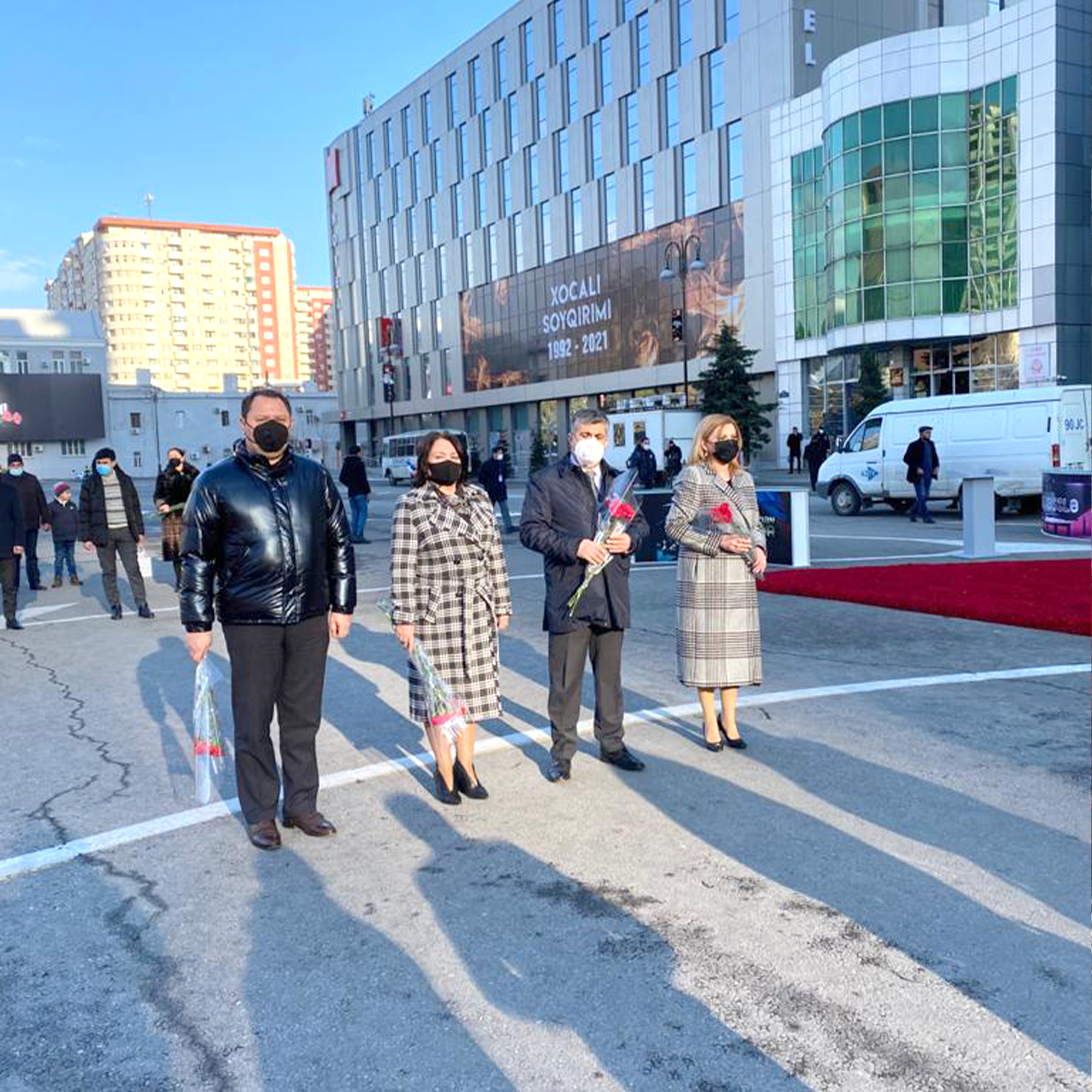 Soyqırımı qurbanlarının xatirəsi ehtiramla yad edilib, abidənin önünə gül dəstələri qoyulub.