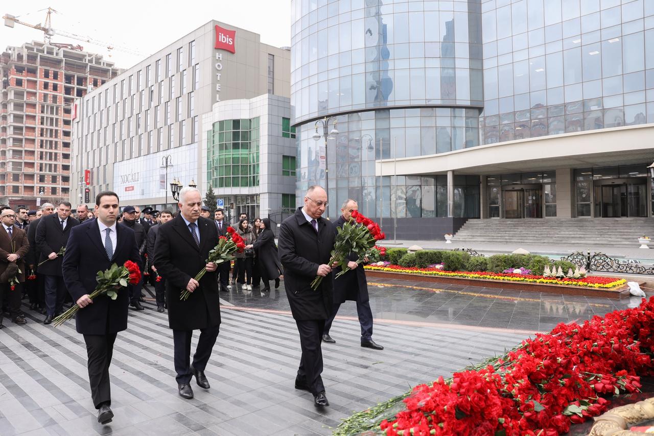 Abidənin önünə gül dəstələri düzülüb, faciə qurbanlarının xatirəsi ehtiramla yad edilib.