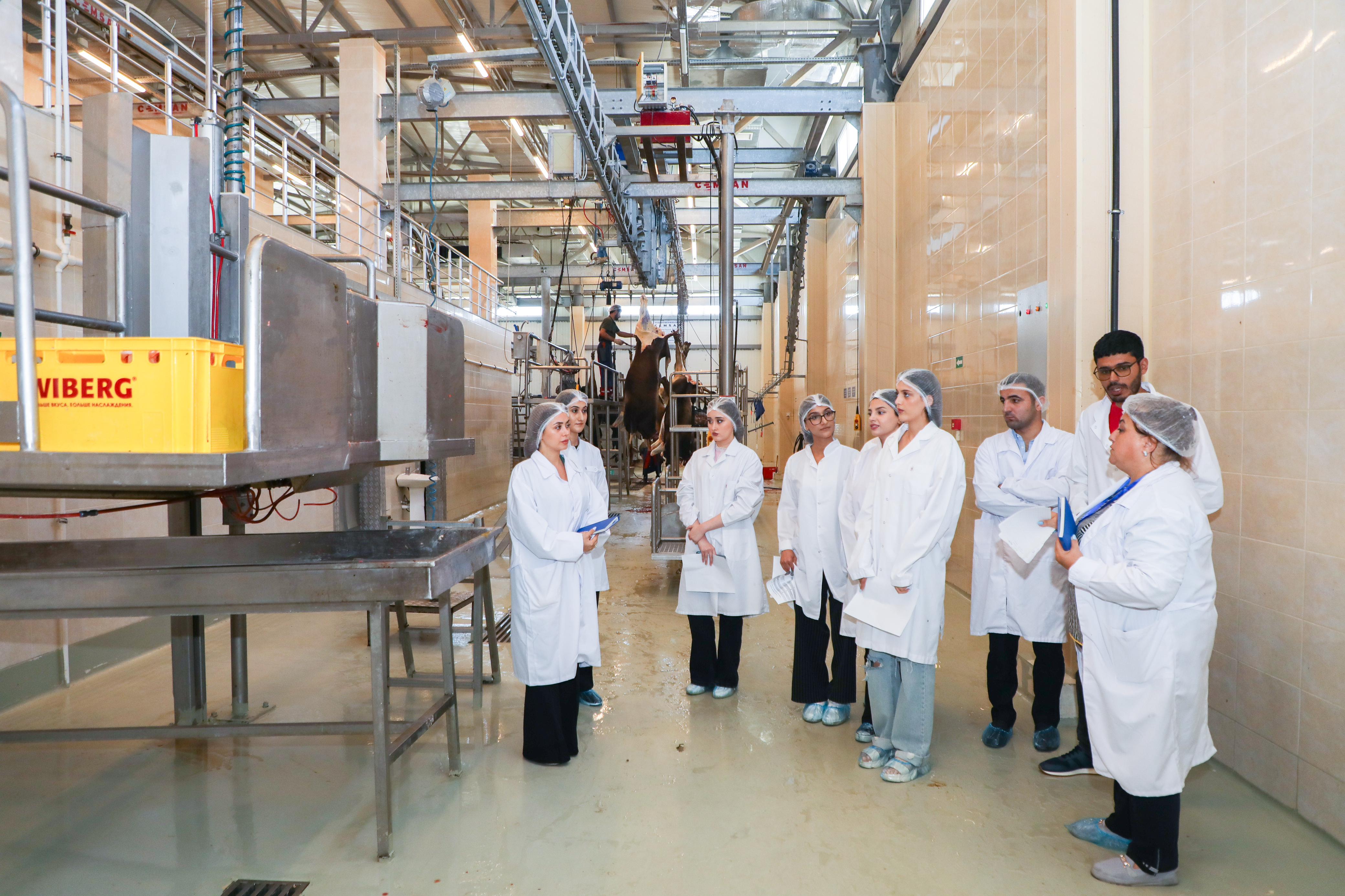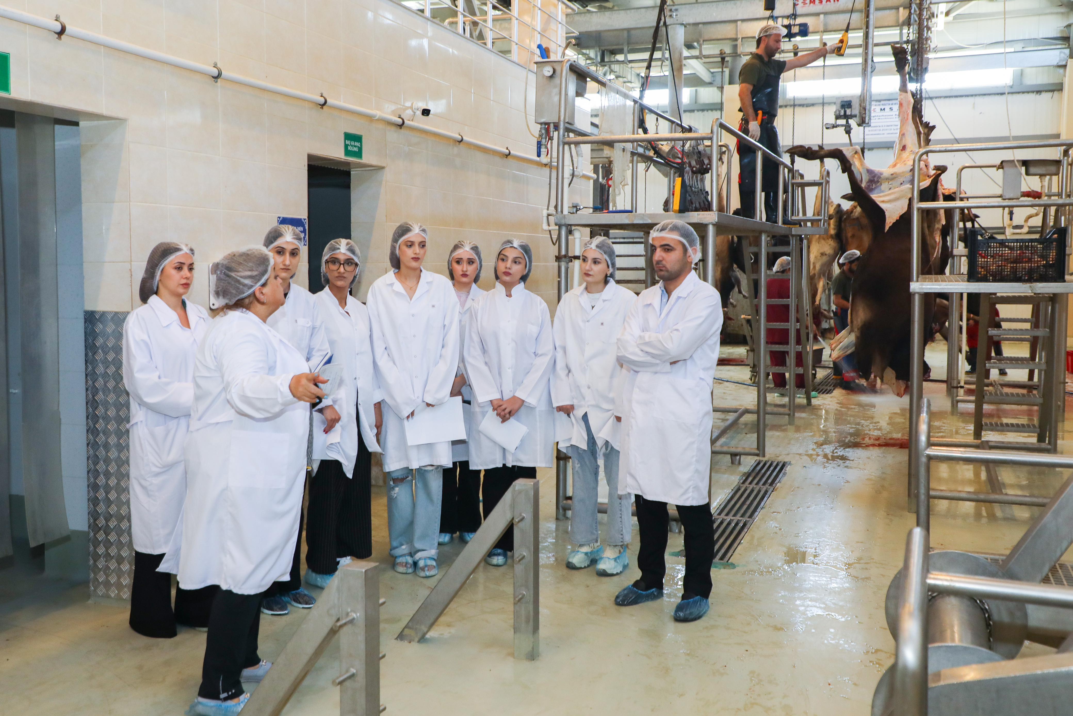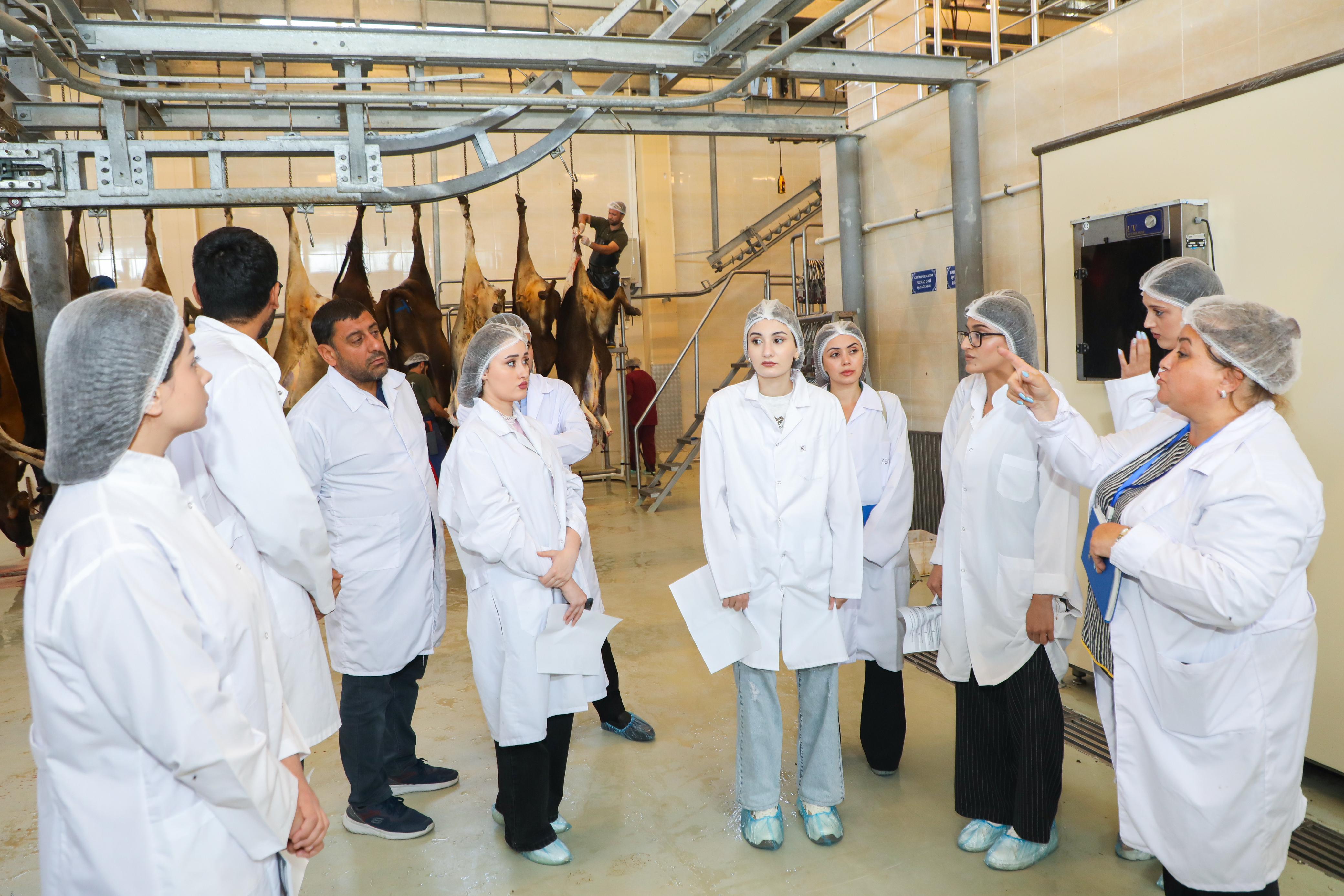 AQTİ və ADAU arasında mövcud olan “Əməkdaşlığa dair Anlaşma Memorandumu”na uyğun olaraq keçirilən kurs çərçivəsində tələbə və məzunların Bakı şəhərində yerləşən müasir tələblərə cavab verən heyvan kəsimi məntəqəsinə səfəri təşkil edilib. Onlar məntəqənin layihələndirilməsi, quruluşu və təchizatı, həmçinin kəsim prosesi ilə tanış olublar. Eyni zamanda iştirakçılara kəsim məntəqəsində əməl edilməli olan baytarlıq-sanitariya normaları və qaydaları, eləcə də müşayiətedici baytarlıq sənədlərinin dövriyyəsi barədə məlumat verilib. Onları maraqlandıran suallar cavablandırılıb.