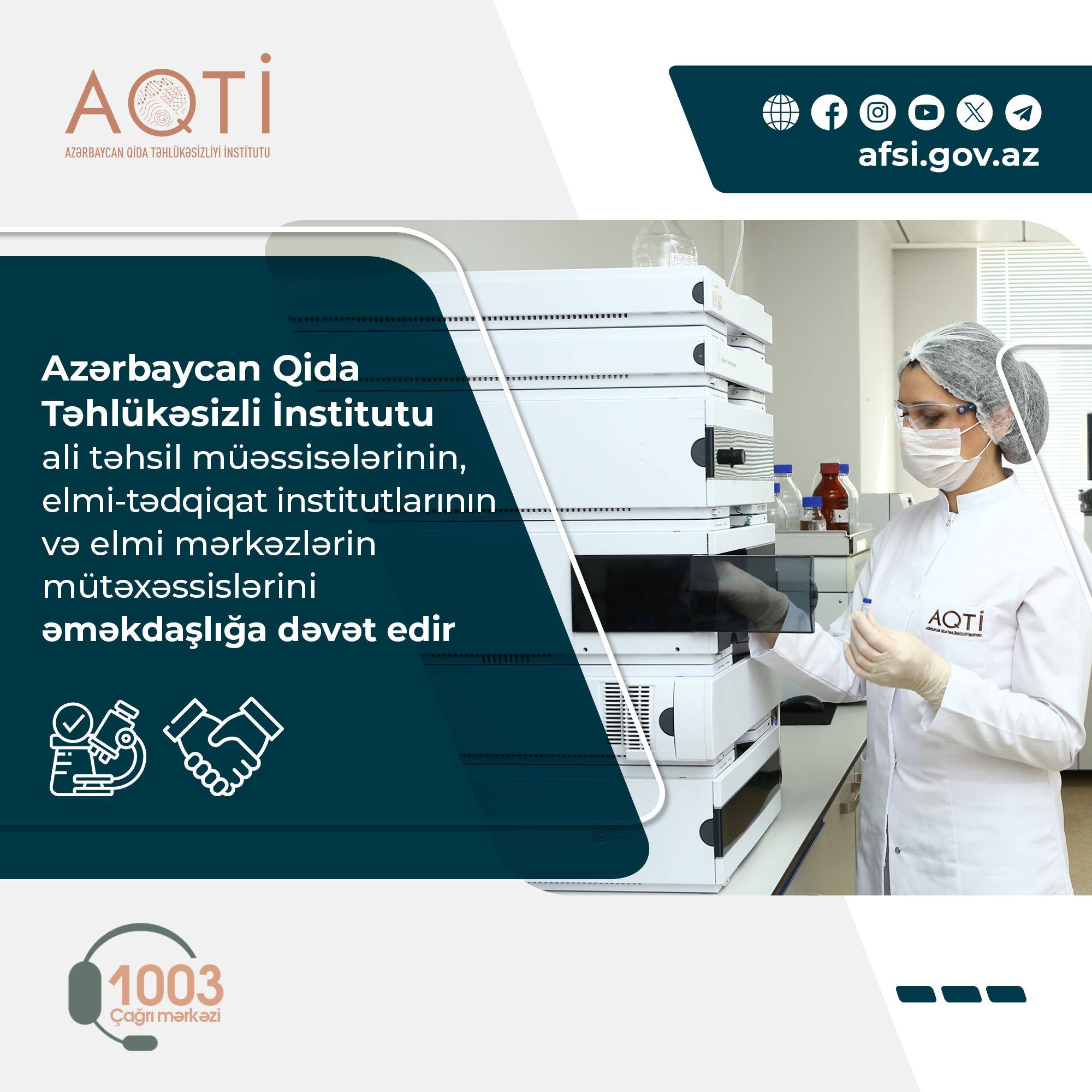 İnstitutun maddi-texniki bazasının gücləndirilməsi və modernləşdirilməsi istiqamətində tədbirlər mütəmadi olaraq davam etdirilir. Bu baxımdan hesab olunur ki, laboratoriya müayinə nəticələri əsasında toplanmış zəngin məlumat bazası nəinki EAM əməkdaşları tərəfindən elmi araşdırmaların həyata keçirilməsində, həmçinin bakalavriat, magistratura və doktorantura təhsili alan müvafiq sahə mütəxəssislərinin elmi-tədqiqat işlərində kifayət qədər faydalı elmi məlumat mənbəyi ola bilər. Qeyd olunan istiqamətlər üzrə AQTİ ilə əməkdaşlıq etmək istəyən mütəxəssislər (+99412) 565 12 72 (daxili 575) nömrəli telefona zəng edə və ya aynur.hasanova@afsa.gov.az elektron poçtuna məktub göndərə bilərlər.
