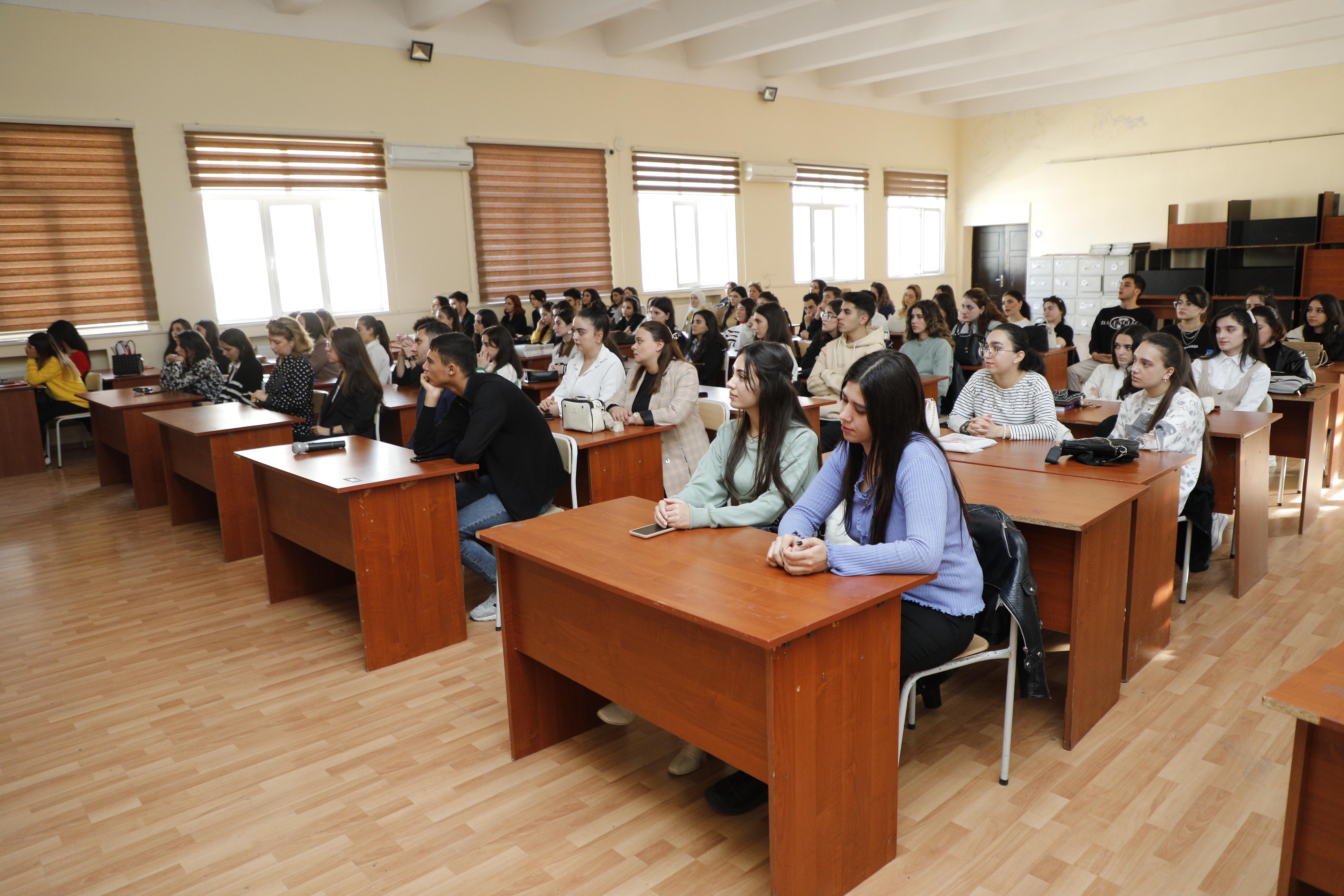 Görüşdə tələbələr AQTİ-nin fəaliyyəti barədə ətraflı məlumatlandırılıb. Bildirilib ki, İnstitutun müasir infrastruktura malik laboratoriyalarında qida təhlükəsizliyi, heyvan və bitki sağlamlığı, eləcə də kompleks tədqiqatlar üzrə elmi-praktiki araşdırmalar, tədqiqatlar aparılır, laborator analizlər, sınaq işləri həyata keçirilir. Elmi fəaliyyətlər zamanı ixtisaslı mütəxəssislərin formalaşdırılmasına və kadr potensialının peşəkarlıq səviyyəsinin artırılmasına önəm verilir. AQTİ-də təcrübə mübadilələrinə xüsusi diqqət yetirilir və yüksək ixtisaslı kadrların qida təhlükəsizliyi sahəsində elmi-praktiki araşdırma və tədqiqat işləri aparmasına da kömək göstərilir. Tədbir zamanı İnstitutda işə qəbul prosedurları, təcrübə və könüllülük proqramları haqqında da məlumat verilib, tələbələrin sualları cavablandırılıb.