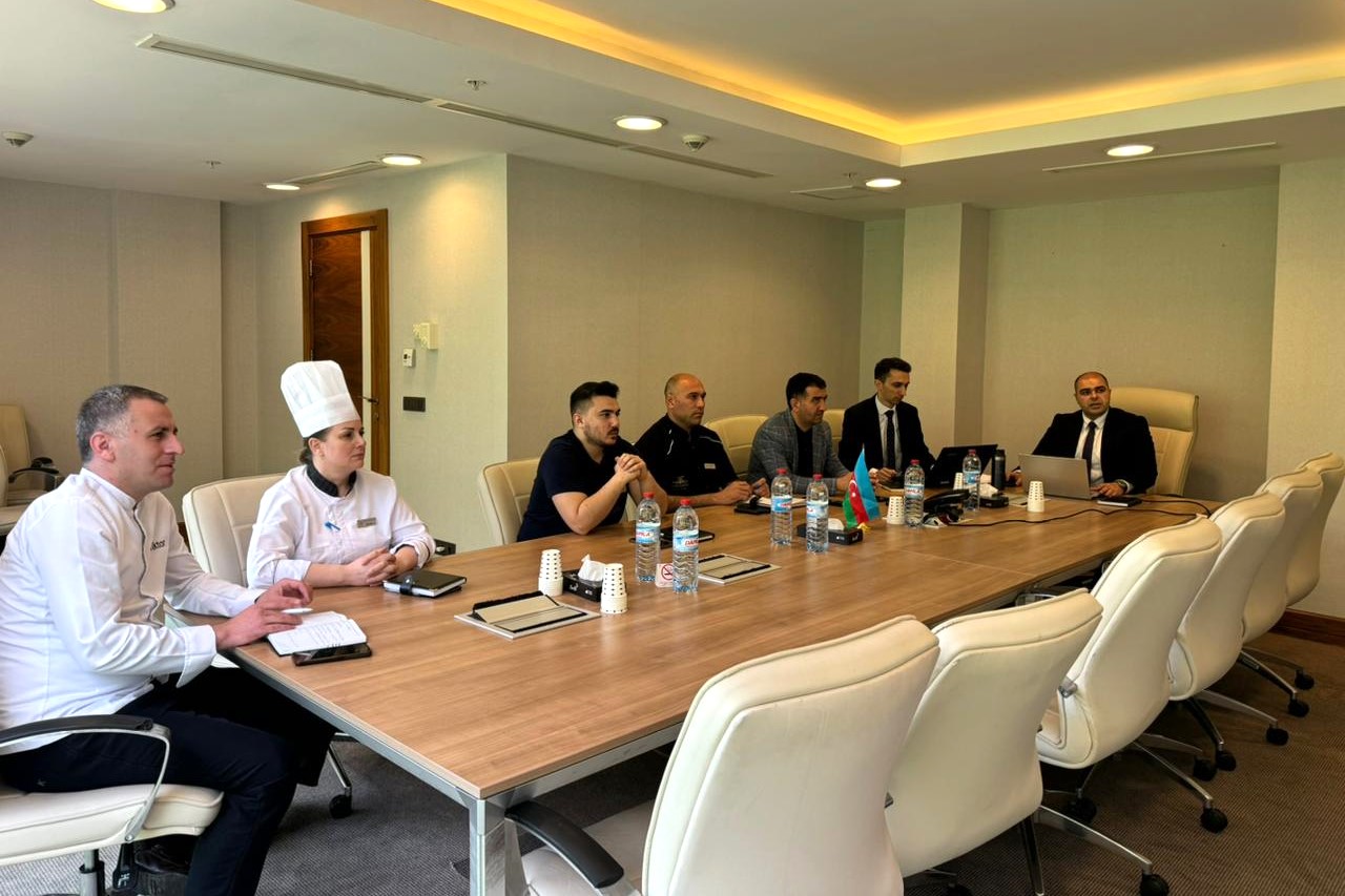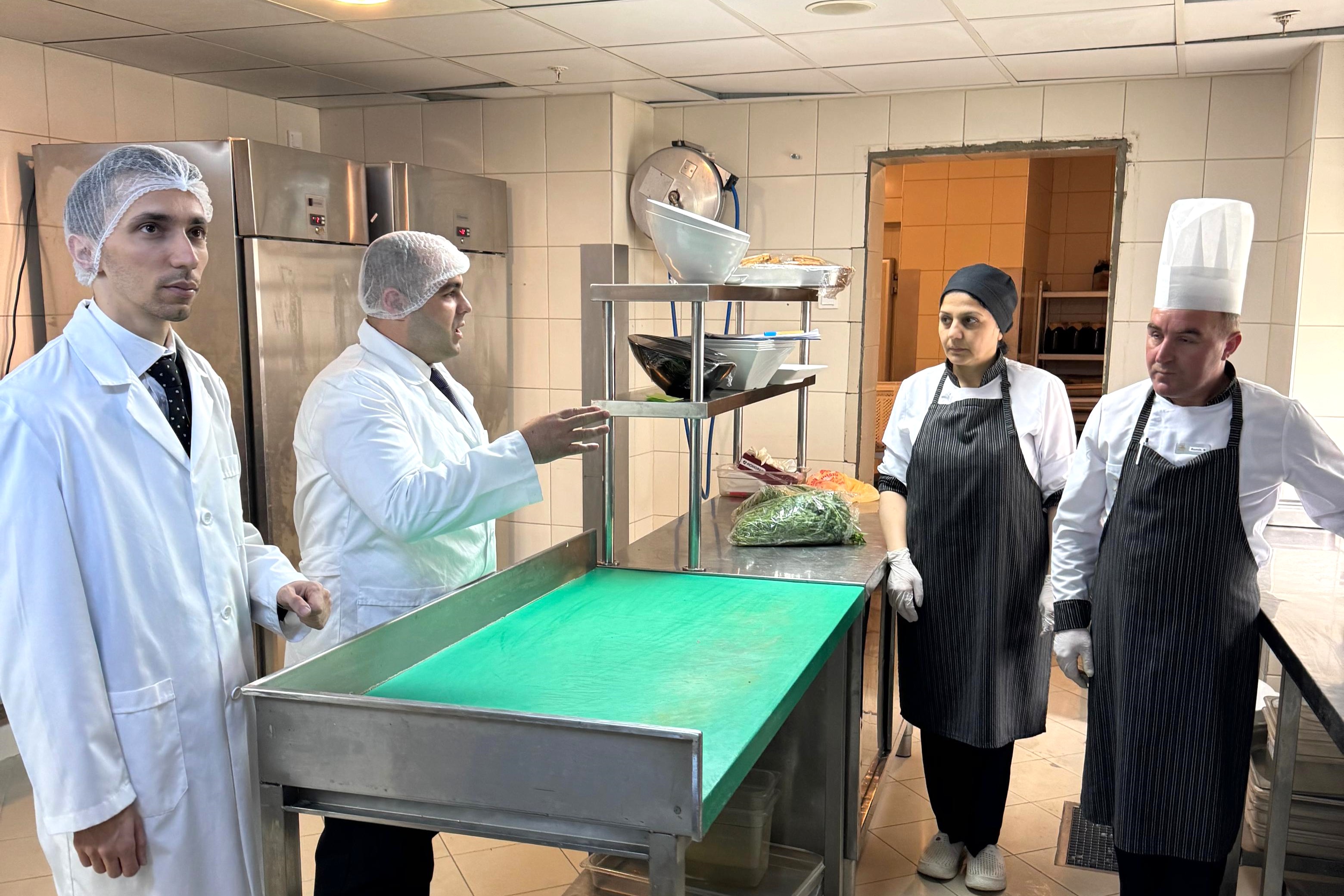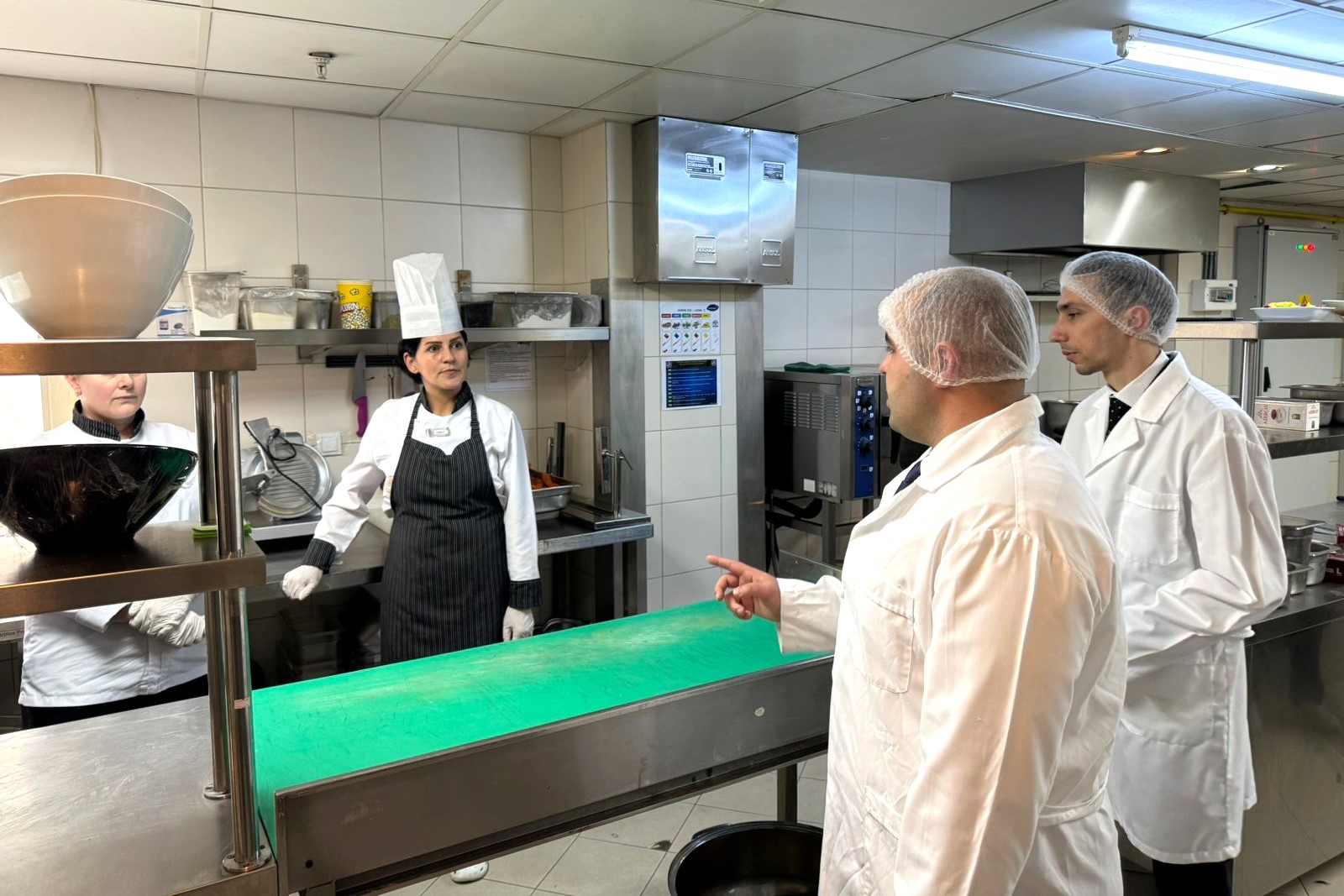 Bu çərçivədə AQTİ-nin mütəxəssisləri tərəfindən Şabran rayonunda “Yeni Qalaltı Hotel Company” MMC-yə məxsus qida blokunda HACCP (Təhlükənin Analizi və Kritik Nəzarət Nöqtələri) mövzusunda təlim, məsləhət və qiymətləndirmə xidmətləri həyata keçirilib. Xidmət zamanı MMC-nin qida blokunun saxlama anbarlarının, mal qəbulu, mətbəx və emal sahələrinin HACCP prinsiplərinə uyğunluğu qiymətləndirilib, müvafiq məsləhətlər verilib. Həmçinin MMC-nin əməkdaşlarına HACCP-nin ictimai iaşə müəssisələrinində düzgün tətbiq edilməsinə, idarəolunmasına, bu sistemlə bağlı qanunvericiliyin tələblərinə və müvafiq sənədlərin hazırlanmasına dair təlimlər keçirilib.