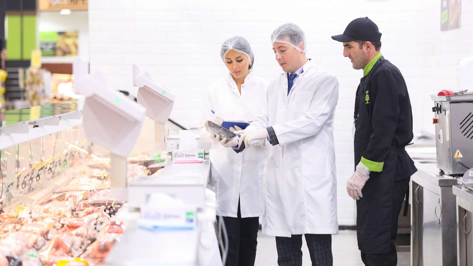 “Bazarstore” marketlər şəbəkəsinin filialında aparılan konsaltinq xidmətləri çərçivəsində müəssisənin “Qida təhlükəsizliyi haqqında” qanun və digər normativ sənədlərə uyğun fəaliyyəti, eləcə də xammalın qəbulundan hazır məhsulun satışına qədər bütün mərhələlərdə sanitar-gigiyenik və sanitar-texniki normalara riayət edilməsi diqqətlə yoxlanılır.