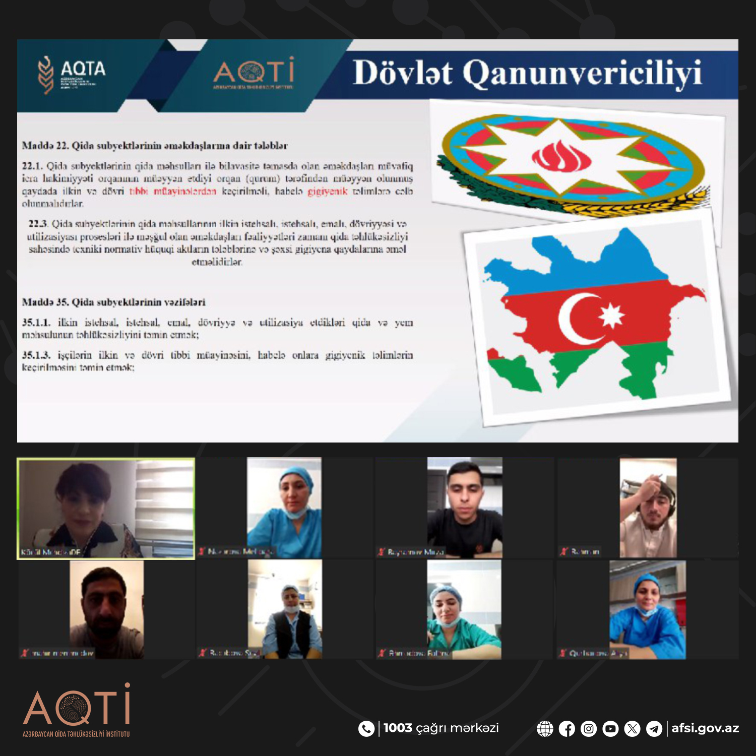 AQTİ-nin mütəxəssisləri tərəfindən növbəti onlayn təlim respublikanın müxtəlif regionlarında fəaliyyət göstərən sahibkarlıq subyektlərinin əməkdaşları üçün “Qida sahəsində gigiyena tələbləri” mövzusunda təşkil olunub.