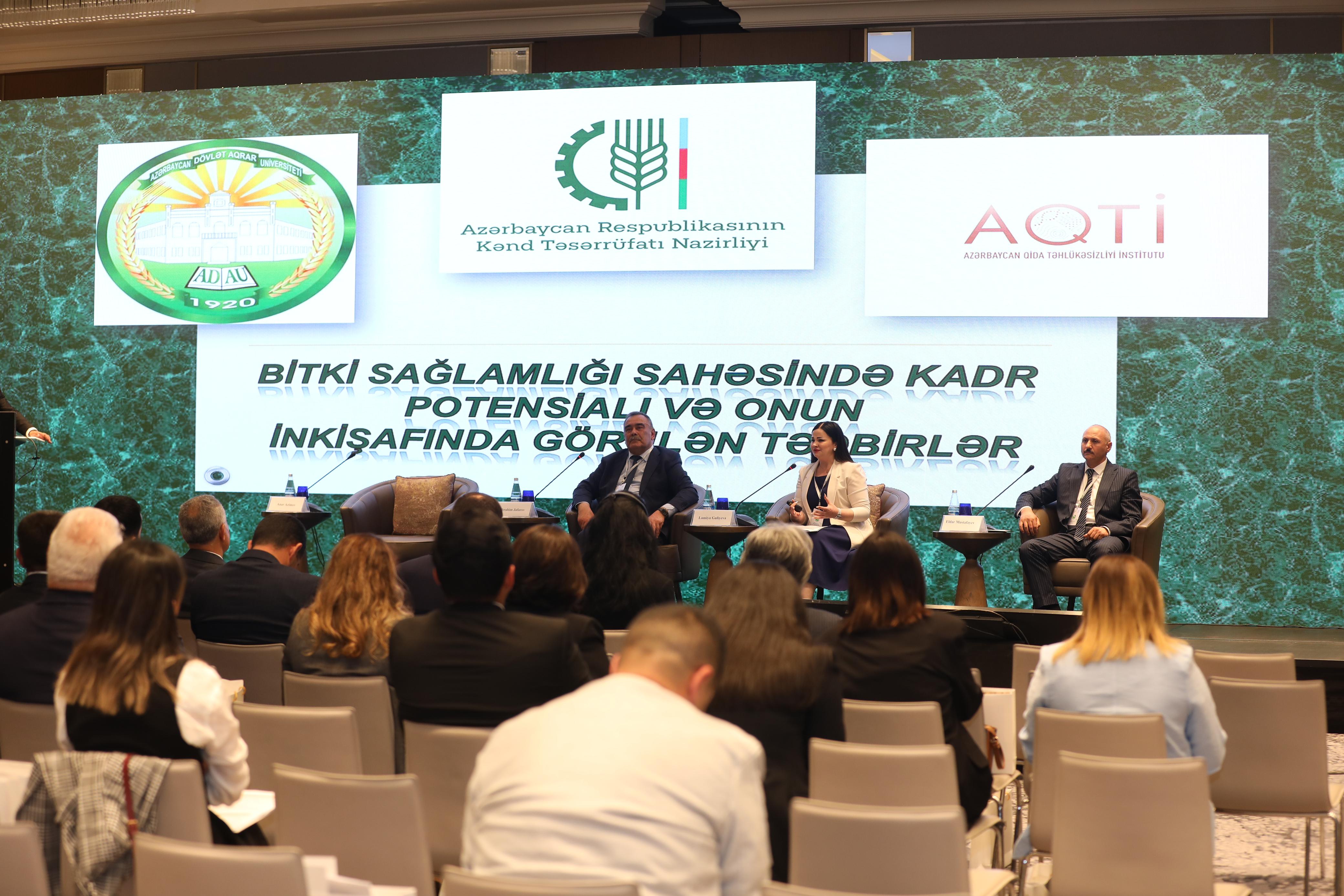 Azərbaycan Respublikası Qida Təhlükəsizliyi Agentliyinin və Kənd Təsərrüfatı Nazirliyinin birgə təşkilatçılığı ilə baş tutan tədbir çərçivəsində bu gün “Meyvə istehsalı sahələrində zərərli orqanizmlərlə mübarizə təcrübələri”, “İstixanada zərərli orqanizmlərlə mübarizə təcrübələri”, “Birillik bitkilərin istehsalı sahələrində zərərli orqanizmlərlə mübarizə təcrübələri” və “Bitki mühafizəsi vasitələrindən düzgün istifadə və bioloji mübarizə üsullarının tətbiqi” mövzularında sessiyalar təşkil olunub. Sessiyalar zamanı mütəxəssislər tərəfindən müxtəlif mövzularda çıxışlar olub, müzakirələr aparılıb, suallar cavablandırılıb. Dünən isə “İqlim dəyişikliyi şəraitində dayanıqlı kənd təsərrüfatı təcrübələrinin zərərli orqanizmlərlə mübarizədə rolu: COP29 konteksində” və “Bitki sağlamlığında elmi-tədqiqatlar və kadr potensialı” mövzularında sessiyalar keçirilib. Fitosanitar Ekspertlər Qrupu təsis edilib.