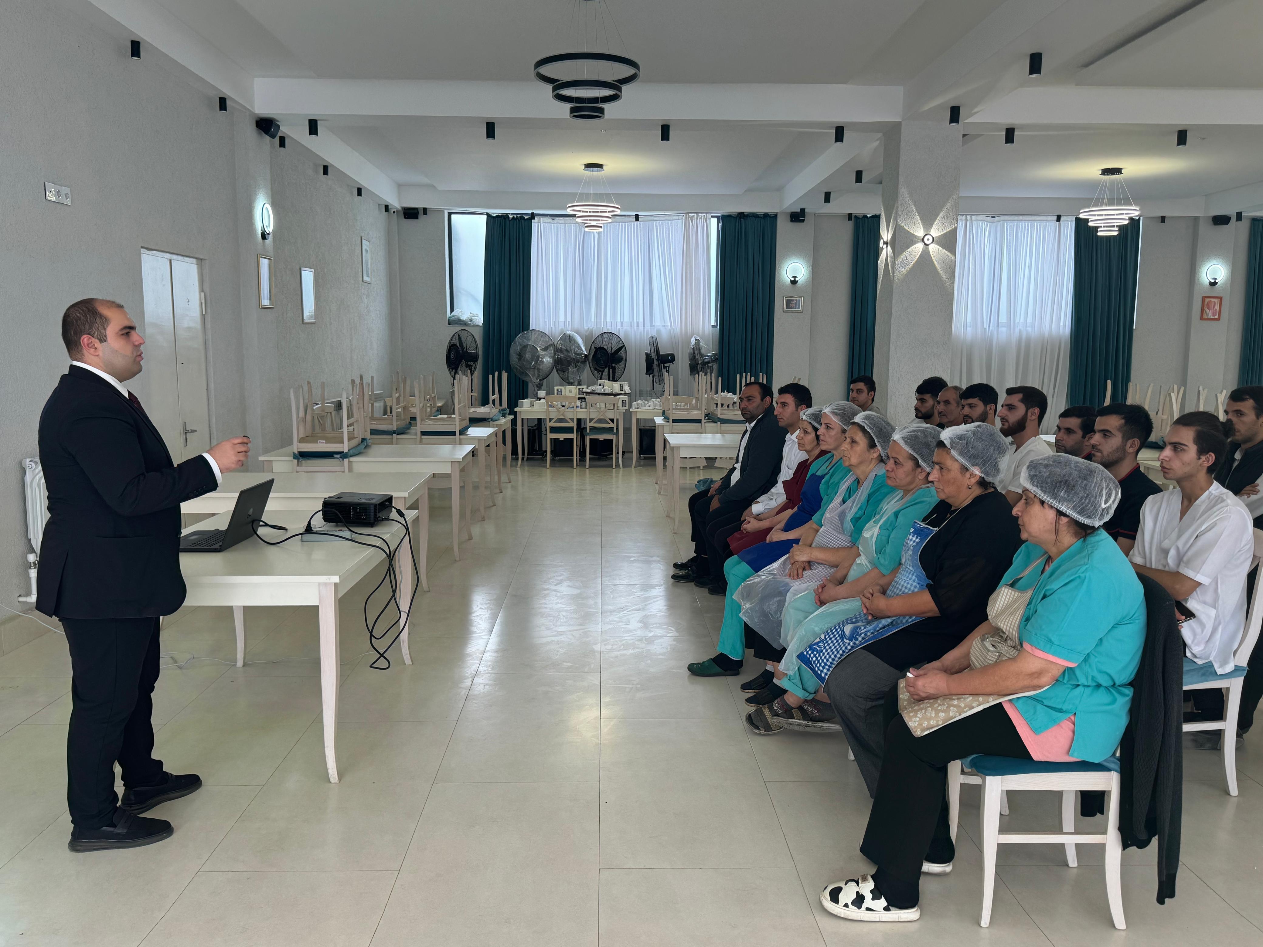 “Qida təhlükəsizliyi haqqında” Azərbaycan Respublikasının Qanununa uyğun olaraq keçirilən təlim iştirakçılara müəssisələrin fəaliyyətinin qanunvericiliyin və sanitariya-gigiyena qaydalarının tələbləri çərçivəsində təşkil edilməsi üçün zəruri məlumatlar vermək məqsədilə keçirilib.
