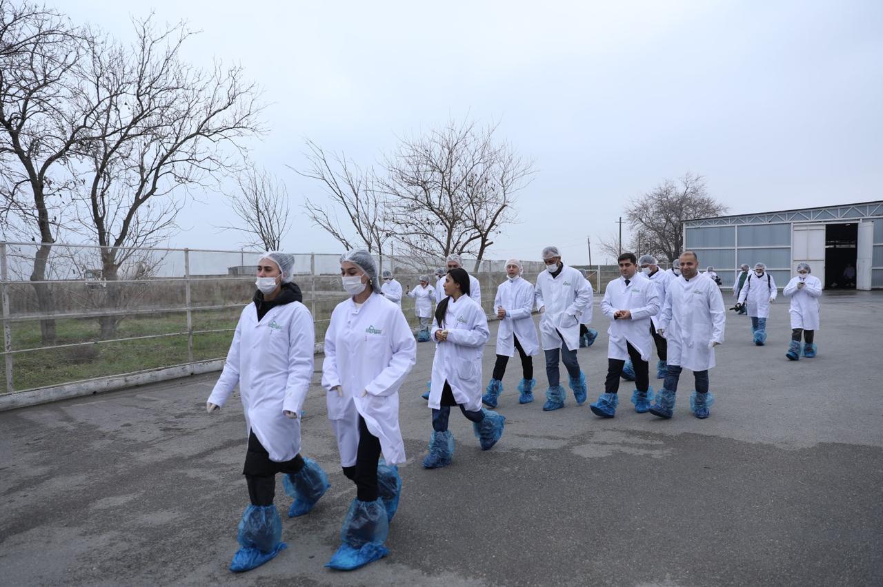 Görüşdən sonra jurnalistlər müəssisənin fəaliyyəti ilə tanış olublar. Onlar xammalın yoxlanılması, quşların kəsimi və məhsulun emalı proseslərini izləyiblər. Bildirilib ki, müəssisədə quşların yemləndirilməsi xüsusi qaydada aparılır, yem və yem əlavələrinə daim nəzarət edilir. Kəsim üçün quşlar seçilərkən isə müvafiq qaydalar, o cümlədən də onların sağlamlığı və təmizliyi əsas götürülür. Kəsimdən əvvəl quşlar baytarlıq nəzarətindən keçirilir. Quşların kəsimi də müvafiq qaydalara uyğun aparılır. Bu zaman kəsim alətlərinin uyğunluğu və təmizliyi də nəzərə alınır. Məhsulun emalı zamanı qanın axıdılması və təmizləmə prosedurları yoxlanılır. İstehsal prosesində qanın məhsula qarışmasının qarşısını almaq üçün müvafiq tədbirlər görülür, qida təhlükəsizliyi təmin olunur.