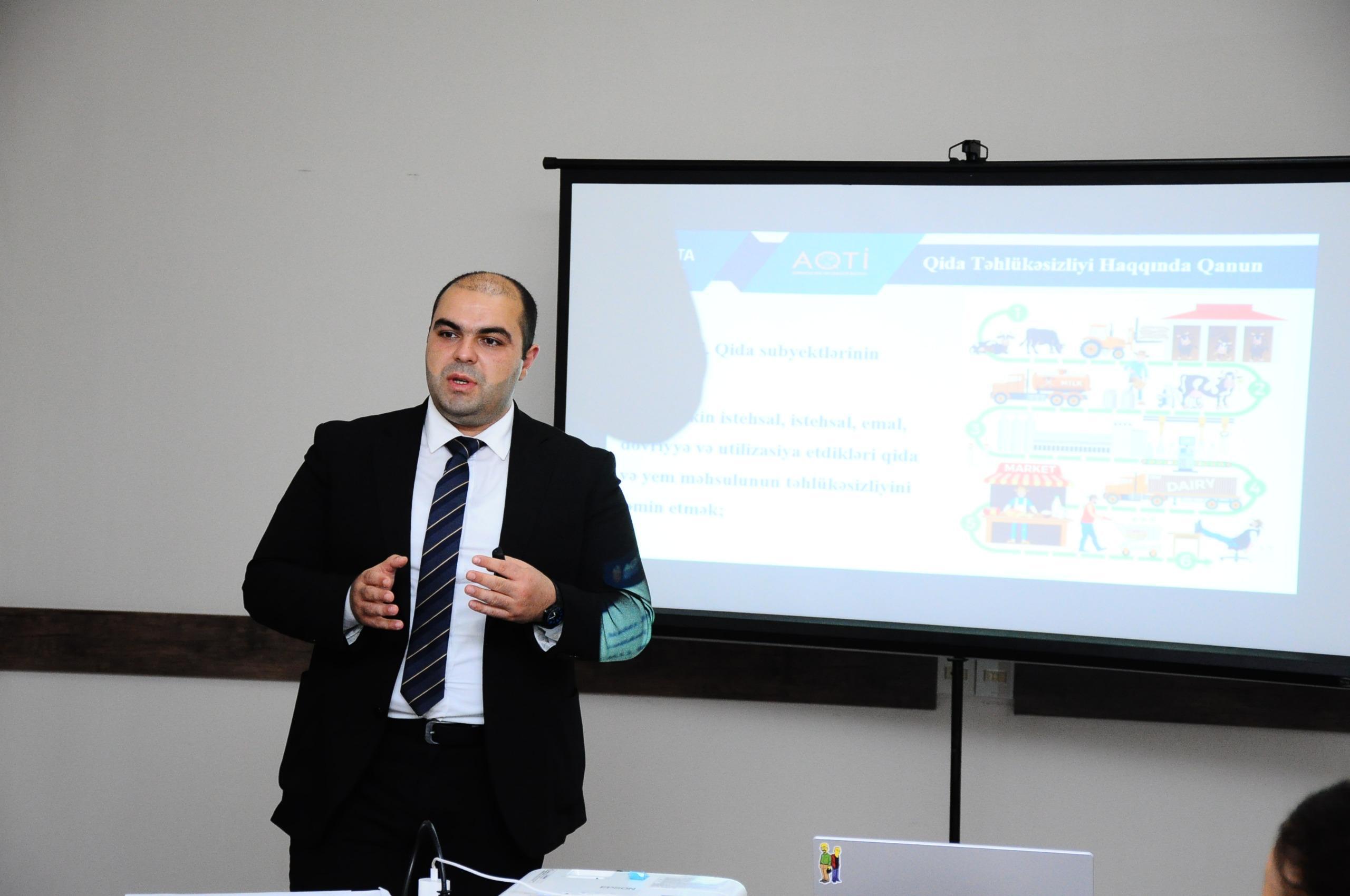 Təlimdə sahibkarlıq subyektləri və onların əməkdaşları “Qida təhlükəsizliyi haqqında” Azərbaycan Respublikasının Qanunu və bu Qanundan irəli gələn tələblər haqqında ətraflı məlumatlandırılıb. Onlara qida obyektlərində qida məhsullarının qəbulu, emalı, saxlanması, daşınması zamanı gigiyena qaydalarının tətbiqi, eləcə də təhlükəli amillər, çirklənmə növləri və digər məsələlər barədə məlumat verilib.
