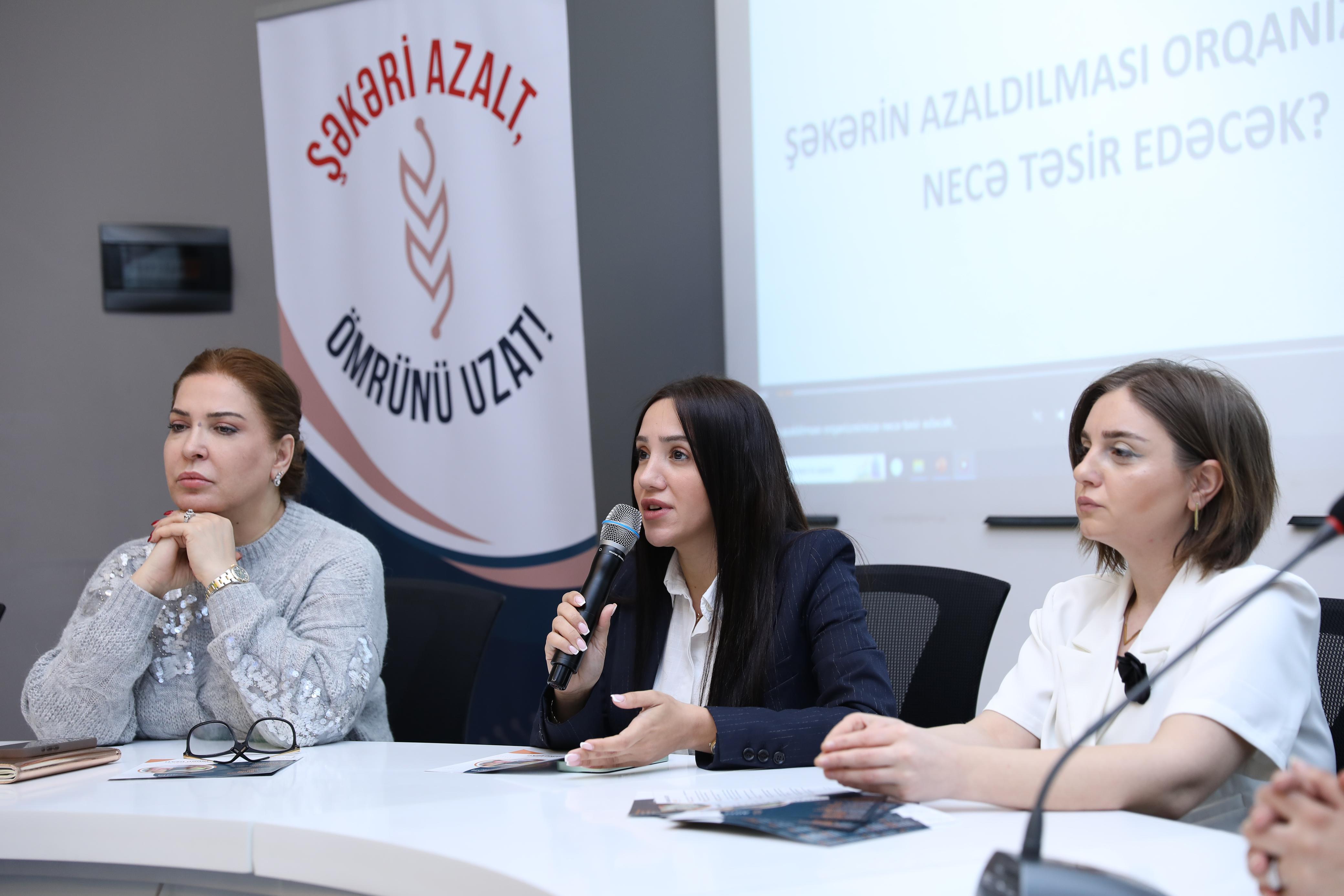 Bu çərçivədə növbəti görüş Azərbaycan Dövlət Neft və Sənaye Universitetində (ADNSU) keçirilib. Tədbirdə AQTA-nın mütəxəssisləri tərəfindən "Şəkərin zərərləri", "Şəkər əvəzediciləri" və "Gündəlik qida rasionunda meyvə-tərəvəzin əhəmiyyəti" mövzularında təqdimatlar olunub. Tələbələrin nəzərinə çatdırılıb ki, şəkərdən normadan artıq istifadə edilməsi insan orqanizmində ürək-damar xəstəlikləri, ll tip diabet, piylənmə, diş çürüməsi, uşaqlarda diqqət zəifliyi və allergik reaksiyaların yaranması, yeniyetmələrdə qavrama qabiliyyətinin aşağı düşməsi, immun sistemin zəifləməsi və xərçəng xəstəliyinin bəzi növlərinin yaranma ehtimalını artırması kimi problemlər yarada bilər. Ölkəmizdə isə adambaşına düşən illik şəkər istehlakı 1995-ci ildən 2023-cü ilə qədər olan müddətdə 125% artıb. 2022-ci ildə 1 nəfərin orta hesabla 27 kq şəkər istehlak etdiyi müəyyən olunub ki, bu da gündə təxminən 74 q şəkərdən istifadə deməkdir. Qeyd edilən göstərici isə Ümümdünya Səhiyyə Təşkilatı tərəfindən tövsiyə olunan 25 qramdan (6 çay qaşığı) 3 dəfə çoxdur. Bundan əlavə, 2012-ci ildən 2023-cü ilə qədər olan müddətdə əhalinin kakao, şokolad və şəkərli qənnadı məmulatları, eləcə də şirinləşdirilmiş mineral və qazlı su istehlakında 40% artım müşahidə olunub. Qeyd edilən tendensiyanın arzuolunan olmadığını bildirən mütəxəssislər sağlam gələcək üçün qida rasionunda şəkər istehlakının azaldılmasını, o cümlədən şəkər əlavə edilmiş məhsulların normadan artıq istehlak olunmamasını vacib hesab ediblər.