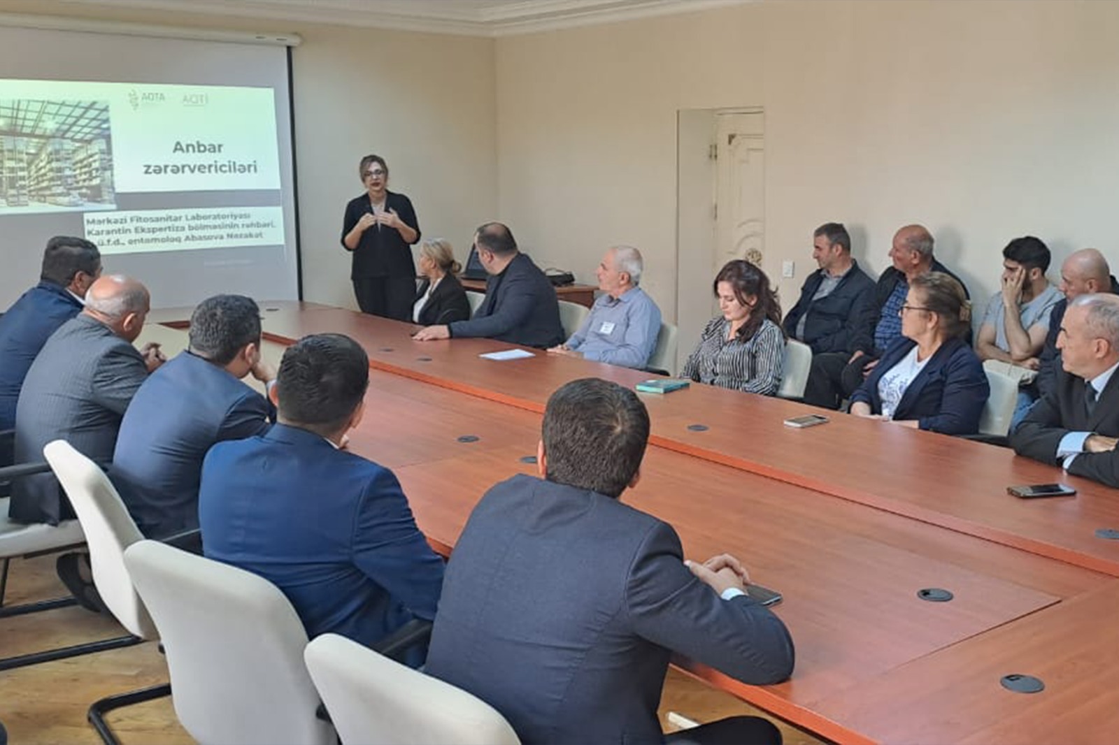 Şəkidə və ətraf rayonlarda fəaliyyət göstərən sahibkarların qatıldığı təlim “Anbar zərərvericiləri və onlara qarşı mübarizə tədbirləri” mövzusunda keçirilib. Təlimdə İnstitutun mütəxəssisi Nəzakət Abbasova iştirakçılara anbarlarda müşahidə olunan və saxlanılan məhsula ən çox ziyan vura bilən zərərvericilər, eləcə də onların məhv edilməsi üsulları barədə ətraflı məlumat verib. Eyni zamanda bildirilib ki, anbarlarda zərəvericilərə qarşı vaxtında müvafiq mübarizə tədbirlərinin aparılmaması kifayət qədər məhsul itkisinə və məhsulun keyfiyyətinin aşağı düşməsinə səbəb ola bilər. Buna görə də anbarlarda zərərli orqanizmlərə qarşı mübarizə tədbirlərinin vaxtında və düzgün aparılması mühüm əhəmiyyət kəsb edir.