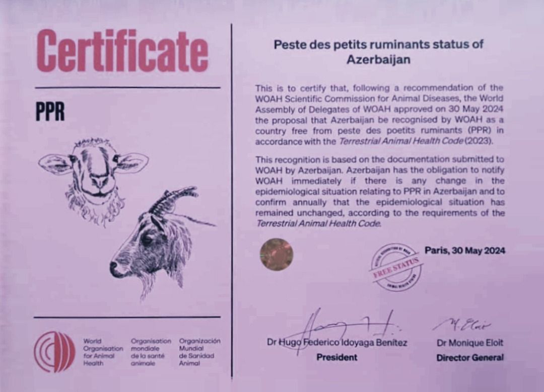 Qeyd edək ki, sözügedən xəstəlikdən azadolma statusunun təsdiq olunması, ilk növbədə, beynəlxalq çağırışa qoşulmaqla ÜHST tərəfindən ölkəmizin baytarlıq sisteminə olan yüksək etibarının təzahürüdür ki, bu da digər xüsusi təhlükəli heyvan xəstəlikləri üzrə analoji yanaşmanın tətbiq edilməsinə şərait yaradır. Digər tərəfdən isə xəstəlikdən azadolma statusu xırdabuynuzlu heyvanların və onlara aid məhsulların ixracı, habelə ölkəmizin ərazisindən keçməklə tranzit daşınması imkanlarını daha da genişləndirəcək.