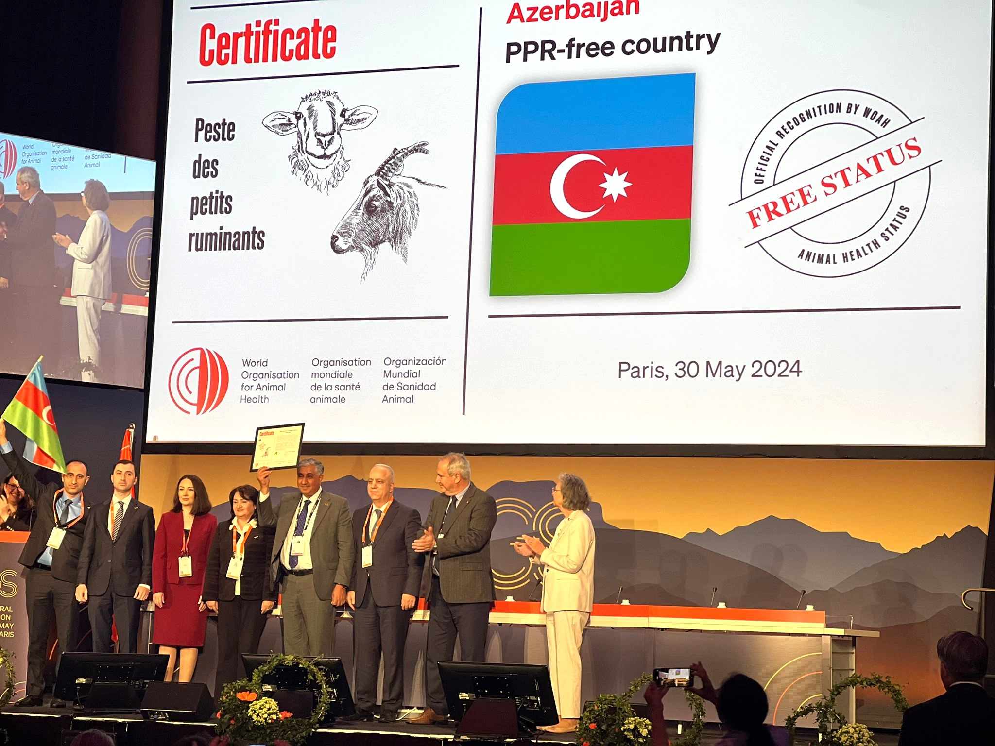 Təşkilatın Elm Komissiyasının rəhbəri ölkəmizin ÜHST-nin prosedur qaydalarına uyğun təqdim edilən Hesabatına baxıldığını və xırdabuynuzlu heyvanların taun xəstəliyindən azad olması barədə tələblərə cavab verdiyini bildirib. Daha sonra səsvermə yolu ilə Hesabat təsdiq olunub. Beləliklə, təşkilat tərəfindən ölkəmizin xırdabuynuzlu heyvanların taun xəstəliyindən azad olması barədə statusunun rəsmiləşdirilməsi beynəlxalq səviyyədə elan olunub. Sessiyada həmçinin vurğulanıb ki, Azərbaycan regionda xırdabuynuzlu heyvanların taun xəstəliyindən azad olma statusu almış yeganə ölkədir. ÜHST-nin rəhbərliyi ölkəmizin bu sahədə təcrübəsinin digər ölkələrlə də bölüşdürüləcəyi və Azərbaycanın bu sahədə liderlik edəcəyini qeyd edib.